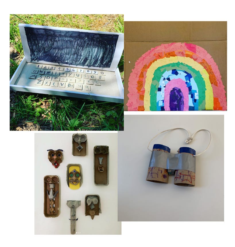 Mothering is there in the relentless crafting I did with them to pass the time, like these binoculars we made out of toilet paper tubes.