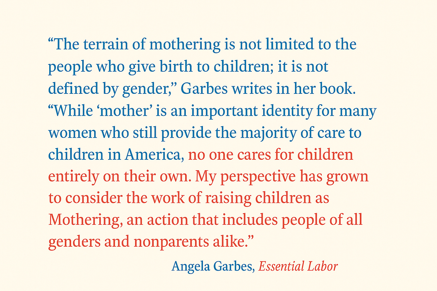 And I should note that I’m using mothering in the Angela Garbes sense of the word, which is to say that it is not gender-specific, and you do not have to have children in order to mother.